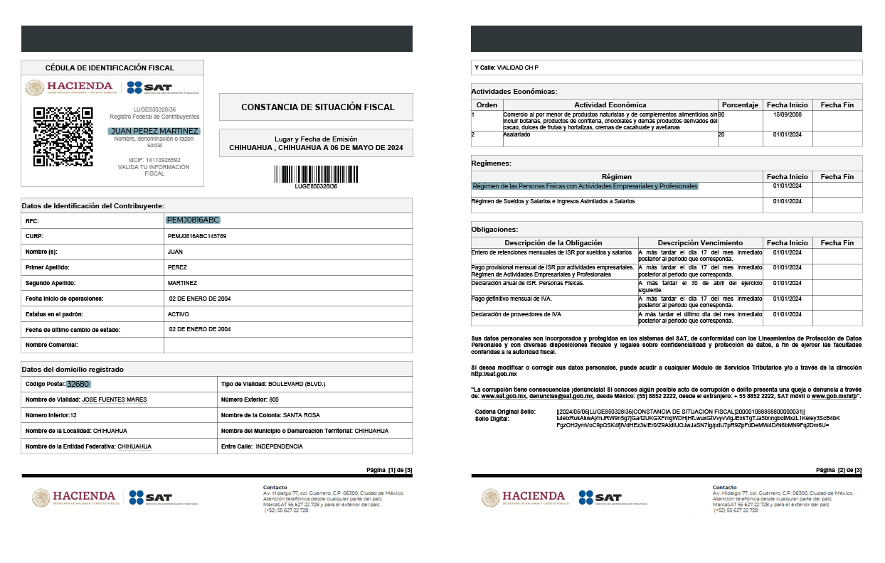 Para la correcta emisión de sus facturas es necesario verificar que los datos fiscales que ingrese coincidan con la información de su Constancia de Situación Fiscal,